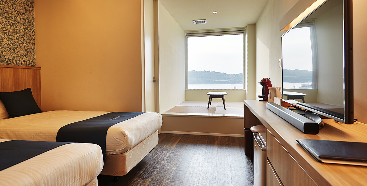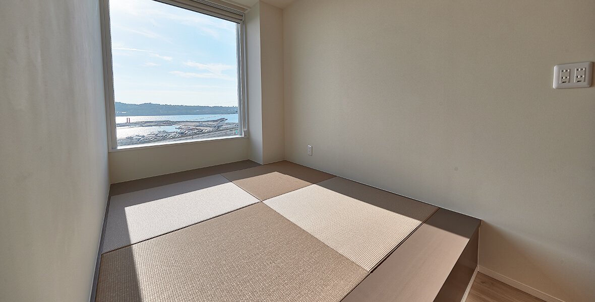 客室の奥には畳スペースを設け、ゴロっと足を延ばしてお寛ぎ頂けます。